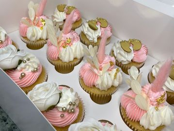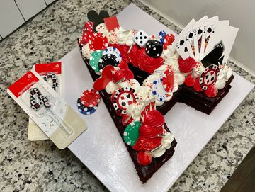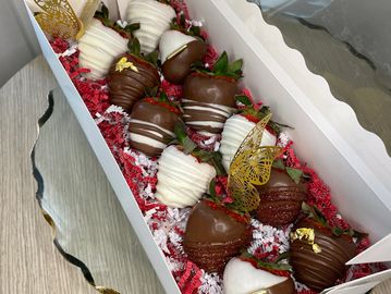 Chocolates, 2 mini bottles (3 for double), flowers, fruits, number candles, topper, sprinkles, edible gold and macarons (outsource).